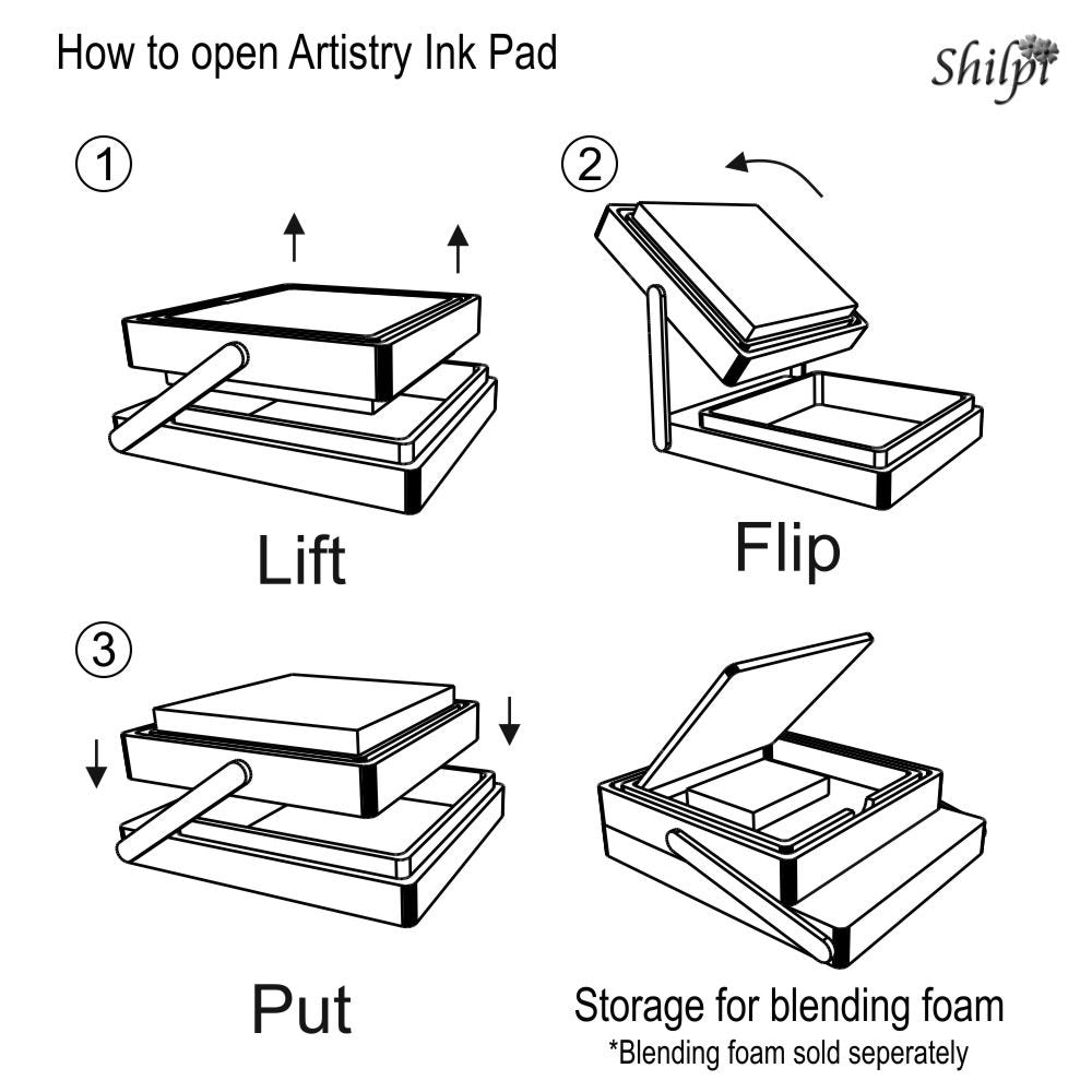- Innovative flip-top design that stores the inking surface upside-down, so the pad stays juicy longer.