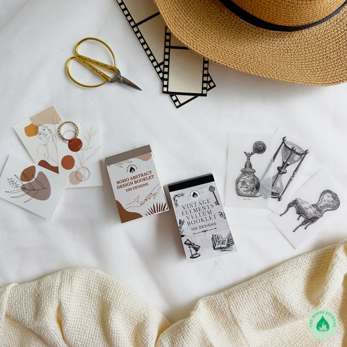 Introducing our exclusive combo offer on the "Boho Abstract Design" Booklet and the "Vintage Elements Vellum" Booklet! Enhance your creative projects and unleash your artistic flair with this perfect pairing of two unique and captivating booklets.