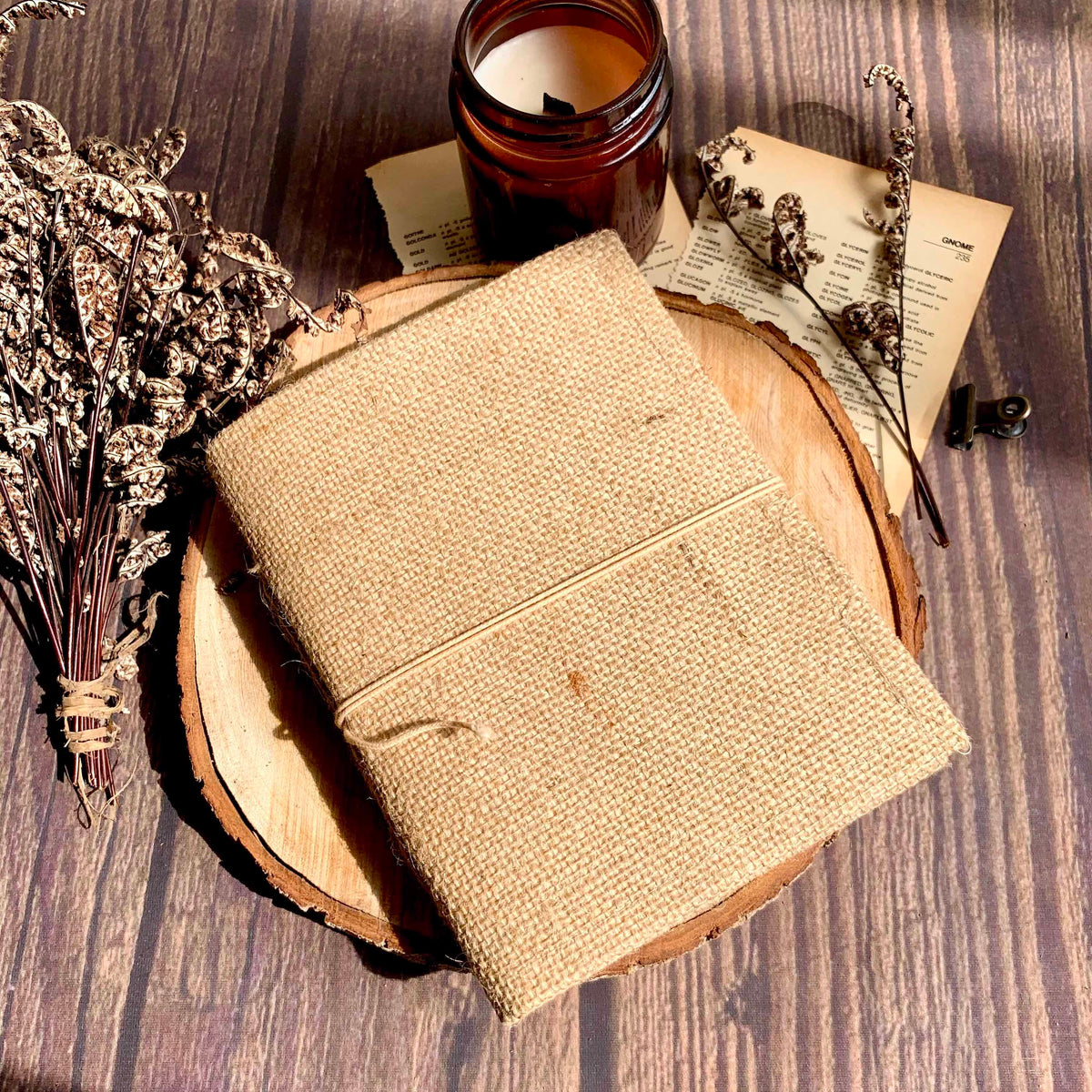 Handmade journal with vintage dyed pages and deckled edges. The diary is jute covered with a string as closure to give a rustic look. You can write, journal, paint. The pages are thick so it prevents from bleeding on the other page.