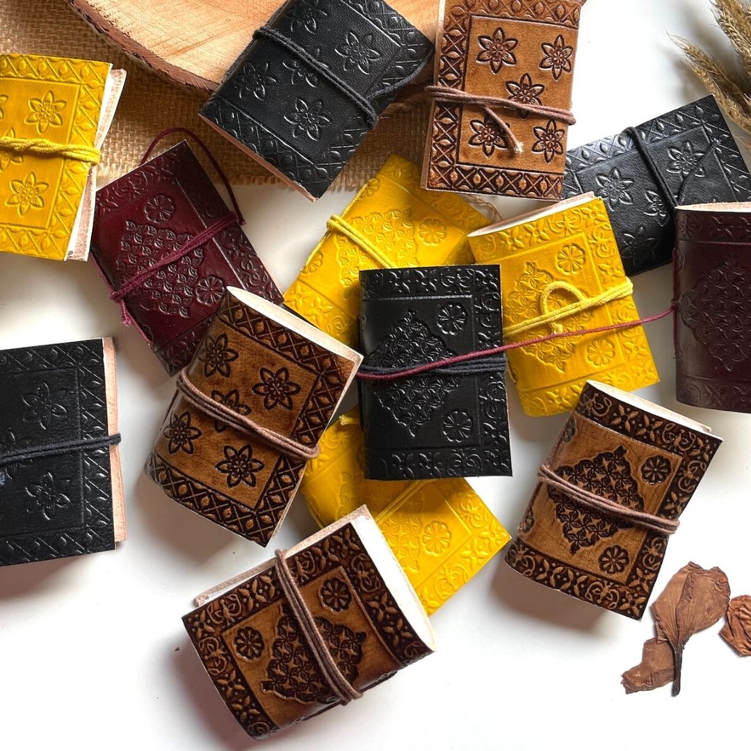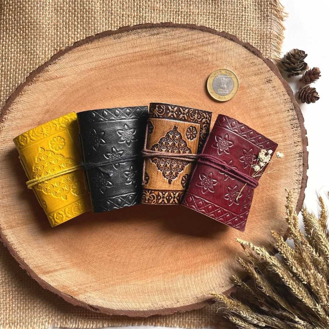 Mini journals are absolutely cute but also challenging to work with which is the most fun part! You can journal, paint and doodle. The cover is in leather with beautiful embossed designs. Each colour is unique in its own way.