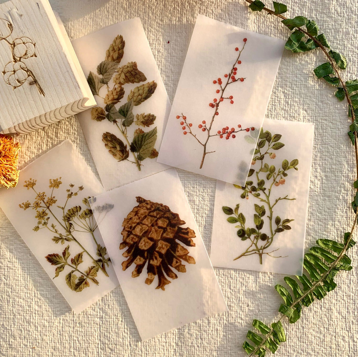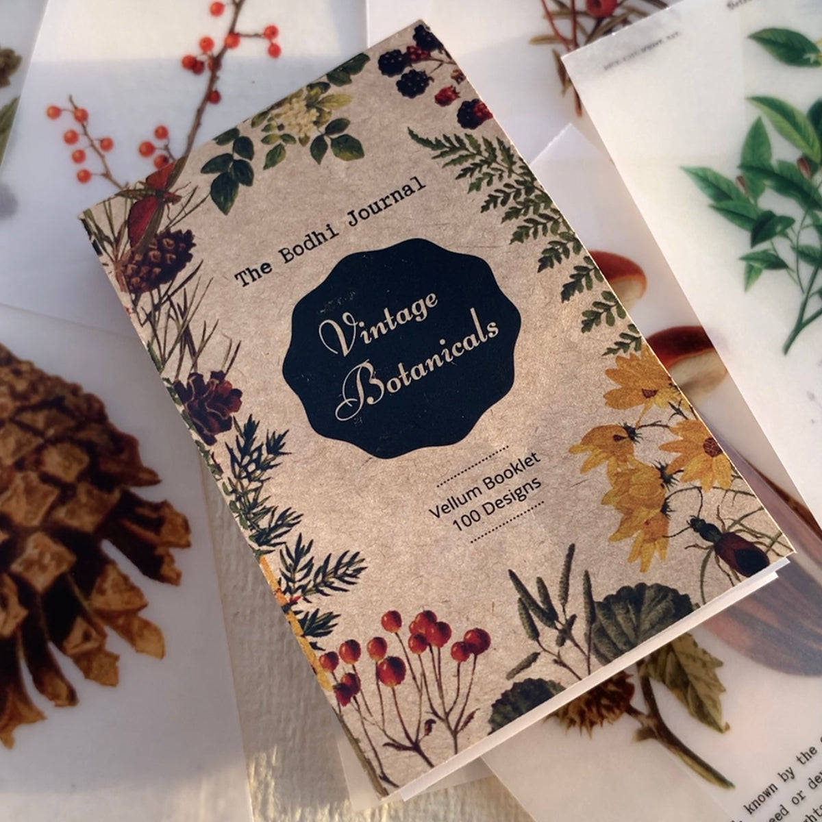 A booklet of vintage botanical designs on vellum paper, the translucent paper gives a beautiful matte finish and elevates your journal pages.Â